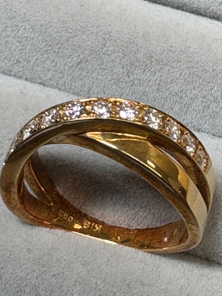 一福久留米店、店頭にてK18金・ダイヤモンド付きリング/指輪を市内からご来店のお客様より高額査定にて買取りさせて頂きました。今回はご来店、貴重なお品をお売りして頂き誠にありがとうございました。また機会があればよろしくお願い致します。金やプラチナなど貴金属製のアクセサリー高価買取中ですので一福久留米店をご利用下さい!1点だけでも喜んで高額買取りしております。お電話での問い合わせ、店頭での見積もりだけでもお受けしております。お電話、ご来店を心よりお待ちしております。