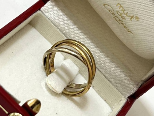 一福久留米店、店頭にてCartierカルティエ・K18金・WG・PGトリニティーリング/指輪を市内からご来店のお客様より高額査定にて買取りさせて頂きました。当店はその他、エルメス、ルイヴィトン、シャネルやブルガリ、ディオール、グッチ、プラダなどのブランド品も高価買取致します。是非一度当店をご利用下さい。お電話での問い合わせ、店頭での見積もりだけでもお受けしております。お電話、ご来店を心よりお待ちしております。今回はご来店、貴重なお品をお売りして頂き誠にありがとうございました。また機会があればよろしくお願い致します。