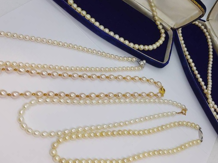 一福久留米店、店頭にてK18金・K18WG・SV925などパール/真珠ネックレスを市内からご来店のお客様より6点まとめて高額査定にて買取りしました。金やプラチナなど貴金属製のアクセサリー高価買取中ですので一福久留米店をご利用下さい!ダイヤモンドやルビー・サファイヤ・エメラルドなどの宝石など、1点だけでも喜んで高額買取りしております。メッキかもしれない、壊れている、などどうかな?ずっと使っていて傷だらけの指輪だけど?ネームが入っているリングだけど大丈夫?石が外れた指輪とか大丈夫なの?とお悩みのお品も誠心誠意丁寧な査定で少しでも高く買取させていただきます。お電話での問い合わせ、店頭での見積もりだけでもお受けしております。お電話、ご来店を心よりお待ちしております。