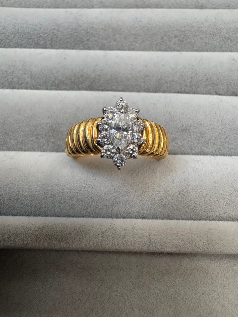 一福久留米店、店頭にてK18金・Pt900・ダイヤモンド0.50ct・5.3gの豪華リング/指輪を市内からご来店のお客様より高額査定にて買取りさせて頂きました。金やプラチナなど貴金属製のアクセサリー高価買取中ですので一福久留米店をご利用下さい!ダイヤモンドやルビー・サファイヤ・エメラルドなどの宝石など、1点だけでも喜んで高額買取りしております。メッキかもしれない、壊れている、などどうかな?ずっと使っていて傷だらけの指輪だけど?ネームが入っているリングだけど大丈夫?石が外れた指輪とか大丈夫なの?とお悩みのお品も誠心誠意丁寧な査定で少しでも高く買取させていただきます。お電話での問い合わせ、店頭での見積もりだけでもお受けしております。お電話、ご来店を心よりお待ちしております。