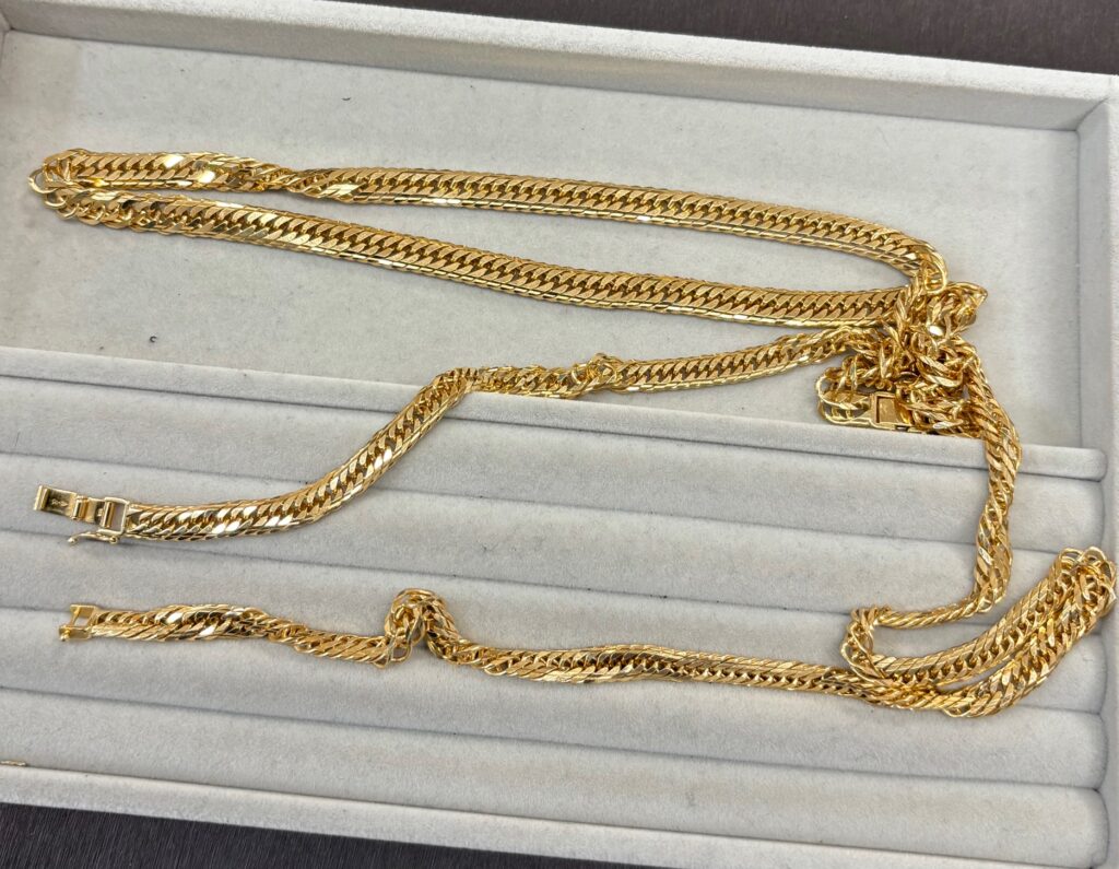 一福久留米店、店頭にてK18金・喜平・2点まとめて140.7gのネックレスを市内からご来店のお客様より高額査定にて買取りさせて頂きました。11/8現在の金の価格で、余裕の200万超えでの買取となりました。今回はご来店、貴重なお品をお売りして頂き誠にありがとうございました。また機会があればよろしくお願い致します。金やプラチナなど貴金属製のアクセサリー高価買取中ですので一福久留米店をご利用下さい!1点だけでも喜んで高額買取りしております。お電話での問い合わせ、店頭での見積もりだけでもお受けしております。お電話、ご来店を心よりお待ちしております。