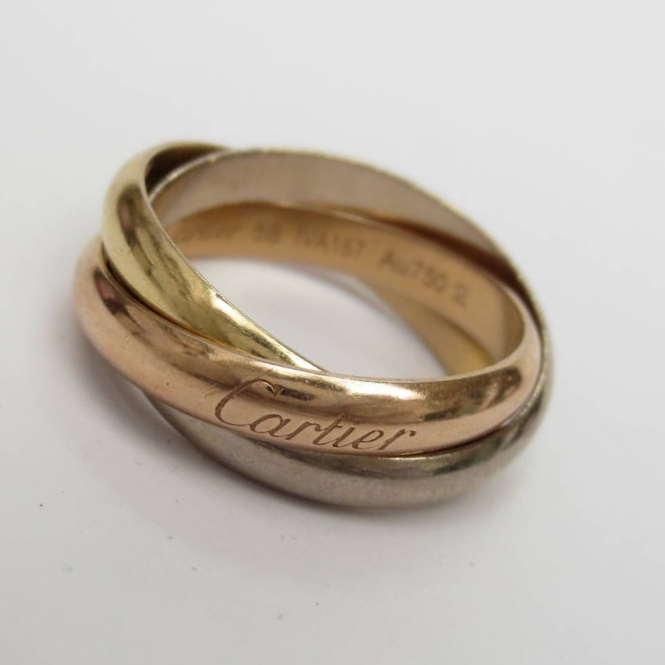 一福久留米店、店頭にてCartierカルティエK18金・YG/WG/PG3連リング/指輪を市内からご来店のお客様より高額査定にて買取りさせて頂きました。当店はその他、エルメス、ルイヴィトン、シャネルやディオール、グッチ、プラダなどその他ブランド品も高価買取致します。是非一度当店をご利用下さい。お電話での問い合わせ、店頭での見積もりだけでもお受けしております。お電話、ご来店を心よりお待ちしております。今回はご来店、貴重なお品をお売りして頂き誠にありがとうございました。また機会があればよろしくお願い致します。