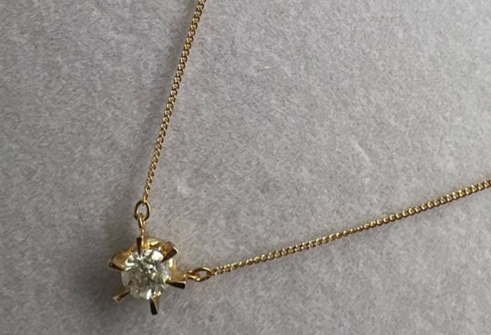 一福久留米店、店頭にてK18金・0.55ctダイヤモンド付きネックレスを市内からご来店のお客様より高額査定にて買取りさせて頂きました。金やプラチナなど貴金属製のアクセサリー高価買取中ですので一福久留米店をご利用下さい!ダイヤモンドやルビー・サファイヤ・エメラルドなどの宝石など、1点だけでも喜んで高額買取りしております。メッキかもしれない、壊れている、などどうかな?ずっと使っていて傷だらけの指輪だけど?ネームが入っているリングだけど大丈夫?石が外れた指輪とか大丈夫なの?とお悩みのお品も誠心誠意丁寧な査定で少しでも高く買取させていただきます。お電話での問い合わせ、店頭での見積もりだけでもお受けしております。お電話、ご来店を心よりお待ちしております。